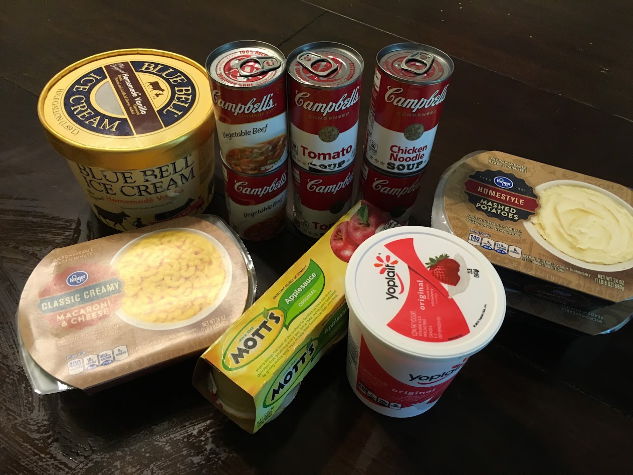 Besides that, it kind of messed with my September Shopping Challenge. On the first day of September, I had to go back out to the grocery store to stock up on soft foods to get me through the first few days. (I've been living on mashed potatoes, ice cream and Campbell's soup all weekend.) Not to mention the walloping copay I had to pay to get the procedure done in the first place. It's probably a good thing I'm doing the shopping challenge after having to dish out that huge chunk of change unexpectedly!